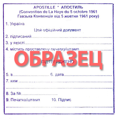 При этом заголовок самого документа пишется на французском языке — «APOSTILLE (Convention de la Haye du 5 octobre 1961)», а в его текст запрещается вносить какие-либо изменения и правки. Сам текст штампа должен быть написан на украинском языке. Согласно международной конвенции, категорически запрещается вносить в текст штампа изменения и менять порядок строк. Признается недействительным штамп, выполненный при помощи метода ксерокопирования или сканирования и дальнейшей его подшивки к документам. На каждом удостоверяемом документе в обязательном порядке должен стоять именно оригинальный оттиск Апостиля.